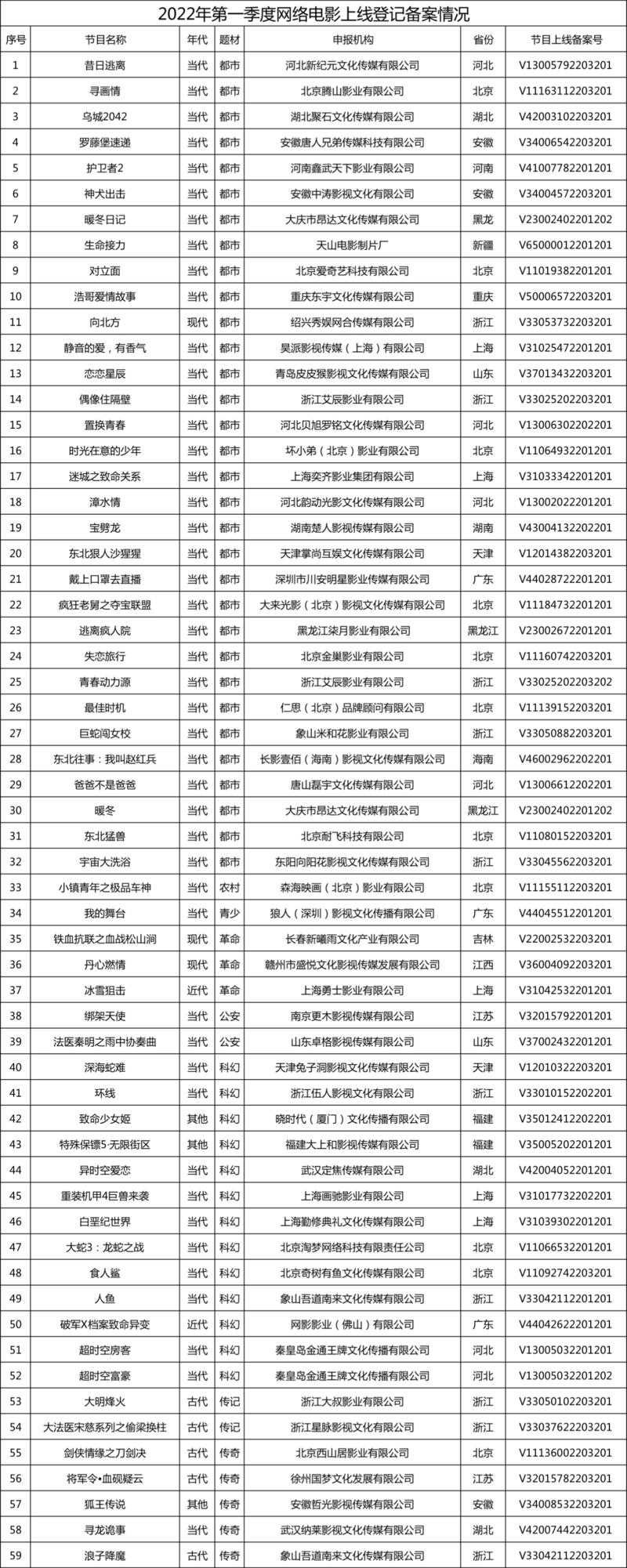 近日,广电总局公布了2022年第一季度全国重点网络影视剧上线登记备案情况,其中网络电影115部,较之2021年第四季度147部网络电影拿到上线号,开年少30部有余。