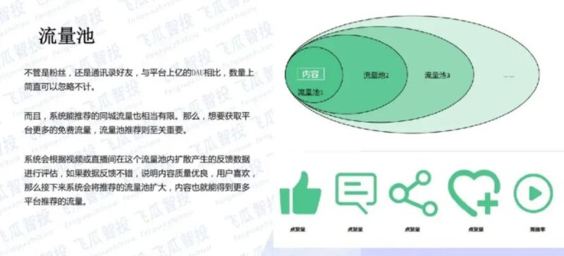 B站的推荐机制与其他平台有很大不同。在内容推荐逻辑上,抖音、快手是以推荐为主的“流量分发机制”,B站是以内容为主的“内容匹配机制”。抖音的流量分发机制是中心化分配方式,即根据完播率、分享率等数据效果,找到最匹配大众喜好的内容,再分发到不同大小的流量池内。简单来说,内容越可能受到大众喜欢,系统推荐的流量池将会越大,内容也就能获得更多流量曝光。