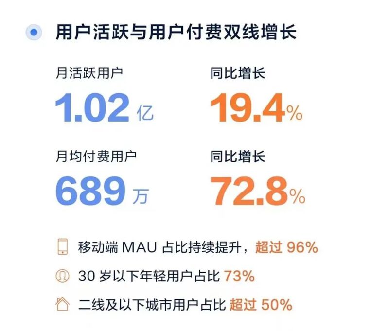 根据知乎财报数据,其月活跃用户达到1.02亿。其中,二线到五线城市用户占比超过53%,30岁以下用户占比达73%;这意味着知乎的用户群依然在不断扩大,突破传统“小众”的概念,向更多地域和年龄段扩张。同时,财报也显示,知乎创作者活跃度在不断上升,平均高等级创作者的日活跃数同比增长40%,日均内容创作同比增长超过125%。