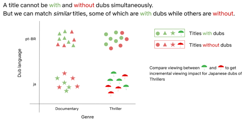 为了估计本地化的增量值,Netflix公司使用了历史数据的因果推理方法。运行大规模训练或随机实验在技术层面和操作上都富有挑战性,特别是当那些无需对内容进行本地化的会员来说,当访问他们喜欢的内容时,应对内容的本地化有所保留。