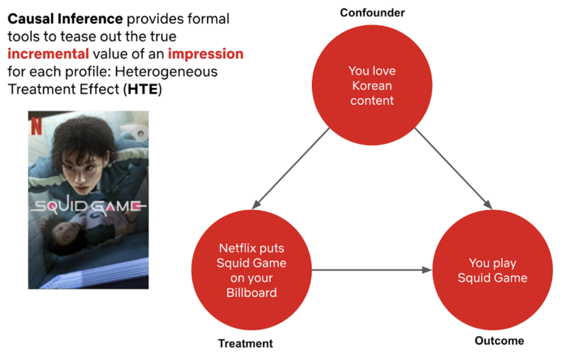 此前,Netflix往往通过AB测试来衡量二者之间的因果效应。而当 AB测试产生局限性时,则可以通过准实验(quasi-experimentation)来解决这一问题。Netflix公司的许多科学家都对因果效应的分析方式做出了贡献。