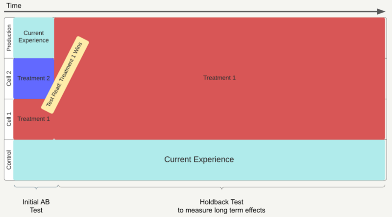 Netflix做了很多反向AB测试,向用户展示了无专业特征情况下的体验。通过测量新特征的长期影响或重新检查旧的假设,这大大改善了会员的用户体验。然而,当提出反向测试的话题时,在实验设计和/或工程成本方面往往非常复杂。