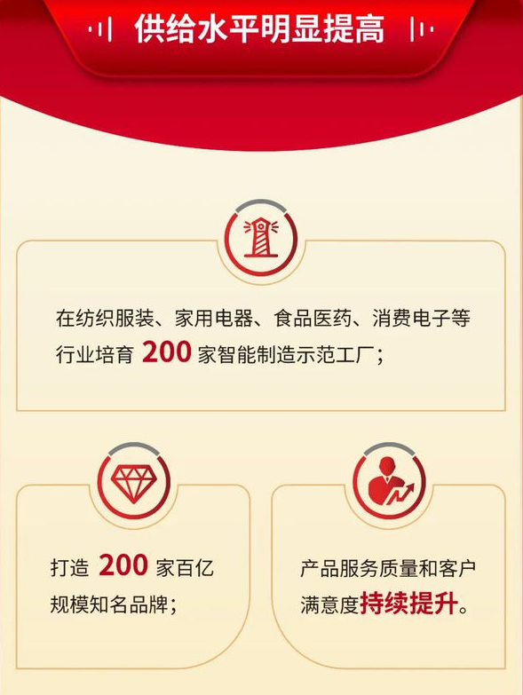 值得关注的是,此次《行动方案》提出到2025年,在家用电器、消费电子等行业培育200家智能制造示范工厂,打造200家百亿规模知名品牌,产品服务质量和客户满意度持续提升等具体目标,以及数字化助力增品种、提品质、创品牌三个方面10项任务等重点内容。