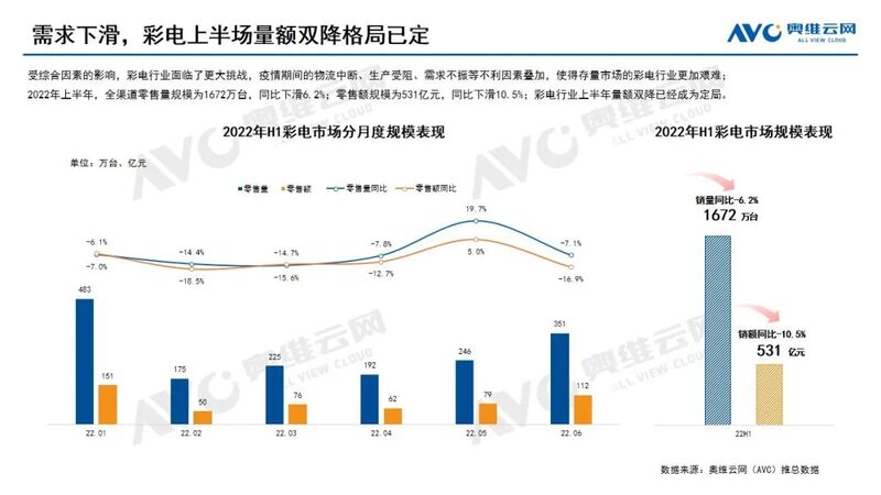 回顾2022年上半年的中国彩电市场,奥维云网(AVC)将从以下3个方面进行总结:
