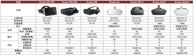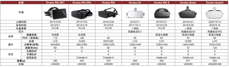 资料来源:Oculus官网,VR compare,中金公司研究部