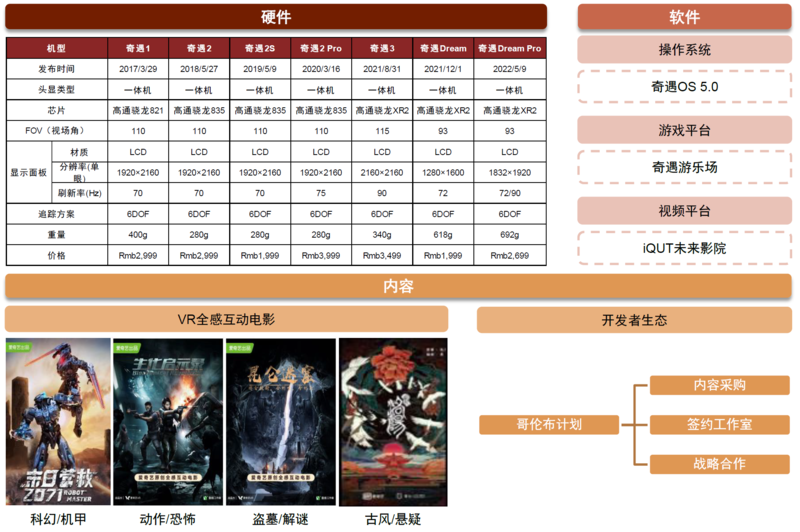 内容方面:爱奇艺已逐步搭建起以剧、影、综、游为主体的VR内容生态矩阵。