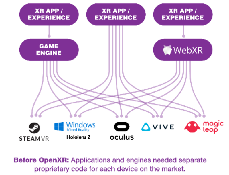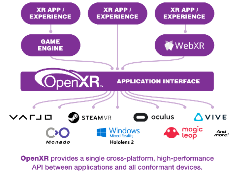 原因二:软硬件平台分化问题被解决。此前由于缺乏标准化的跨平台协议,VR应用程序、游戏、引擎需要移植到每个供应商的API,也就是说每个VR设备只能运行对应SDK的应用程序,因此内容生态的发展被碎片化的软硬件平台限制。2019年Khronos组织公开发布正式版Open XR 1.0规范。Open XR是一个无版权费的、开放式的XR行业标准规范,旨在简化 AR/VR 软件的开发,通过建立 VR/AR 硬件、游戏引擎和内容之间的底部连接,打造互通互联的开放生态。该行业标准规范使得应用程序可以在无需移植或重写代码的情况下,支持不同的VR头显运行,实现跨平台的XR体验。这一行业标准的建立有利于进一步促进XR的内容生态发展。目前Open XR已经获得谷歌、Meta、HTC等众多VR厂商的支持。