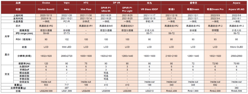 VR硬件标准基本明确,微创新驱动硬件使用改善。2020年发布的Oculus Quest 2已达到消费级水平,在显示参数、外观设计和价格等方面均满足了VR用户的基本需求,树立了VR硬件头显标准。后续新世代的主流VR产品也纷纷参考Quest 2,向性能升级、轻量化、便捷化、价格下探等趋势进行升级迭代,力争为用户提供更好的产品交互体验。