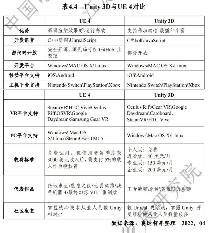 美国作为元宇宙开拓者,底层技术领先,产业布局全面。Meta、微软的XR头显设备占据XR半壁江山,占据了元宇宙的硬件接入口;Amazon、微软、Google、IBM等科技巨头在云计算领域的市占率排在全球前列,目前全球90%以上大型游戏公司依托Amazon云在线托管。此外,在算法方面,Google、Mate、亚马逊、微软等科技巨头纷纷布局基础算法框架,开发TensorFlow、MXNet、CNTK、Caffe等一批主流人工智能算法框架;底层工具方面,Unity开发的游戏引擎、EpicGames的虚幻引擎、Decentraland的经济系统等,为元宇宙世界创作者提供了强大的创作工具。