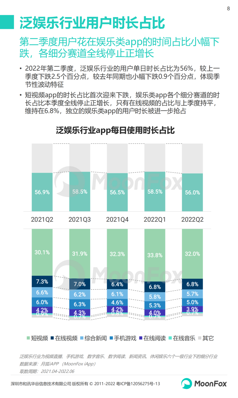 【流媒体网】摘要:短视频行业终结时长增长神话,第二季度网民观看短视频的时长占比首次出现下跌,从一季度的33.8%减少至本季度的32%。(文末附有报告全文链接,欢迎今日流媒体VIP会员下载阅读!)