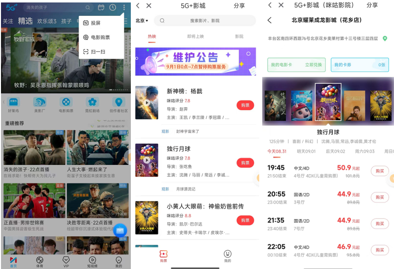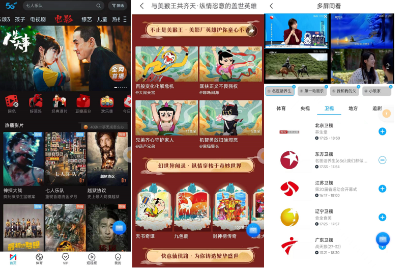 院线还在热映的电影、美影厂动画专区、直播四屏同看,咪咕视频亮点颇多