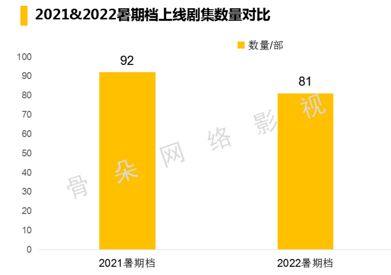 2021年暑期档,全网一共上线了92部国产连续剧,而今年暑期档上线剧集的数量为81,同比减少约12%。除腾讯视频外,爱优芒暑期档剧集的数量都有所缩减。