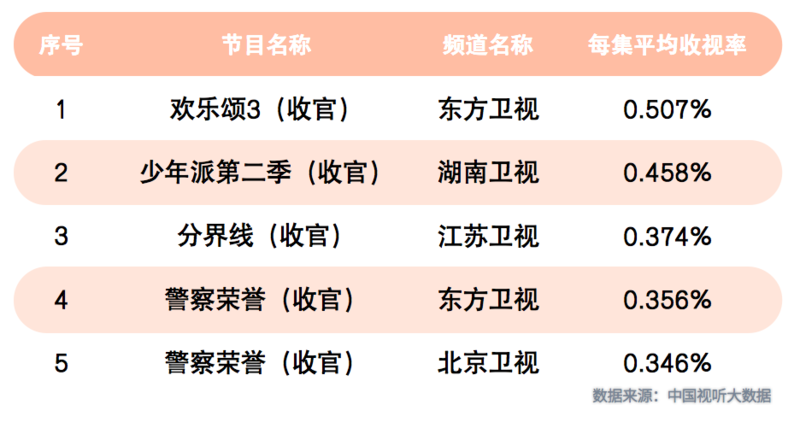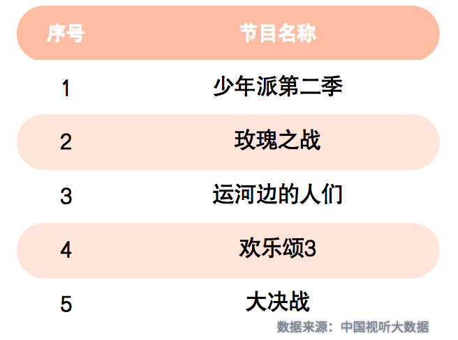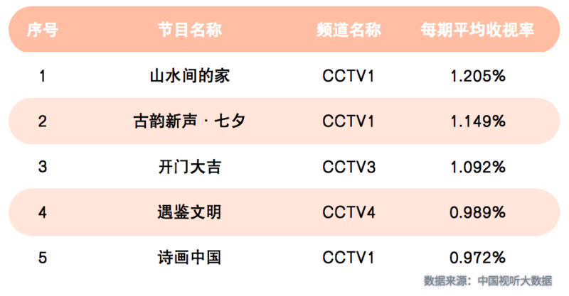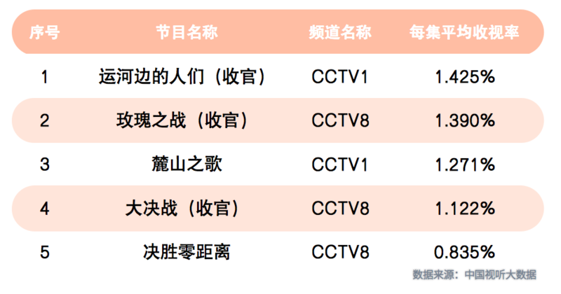 8月,单频道收视率前5的央视黄金时段电视剧为: