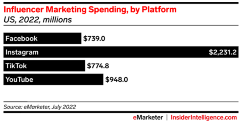 InsiderIntelligence 的数据预测,2022 年营销人员在 TikTok 上的网红营销支出将会超过 Facebook,但是可能多数的支出都投入在了商业价值更高的头部创作者