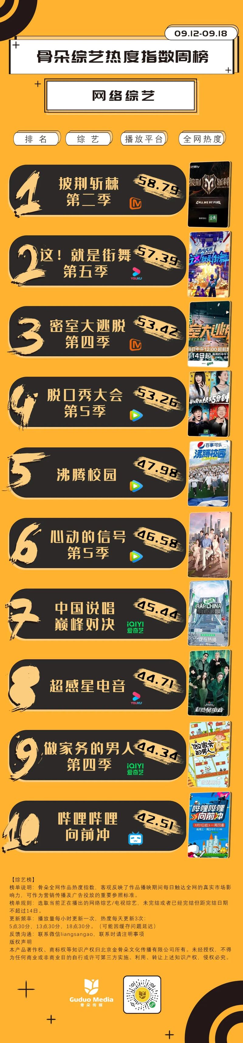 网综周榜|《披荆斩棘第二季》《这!就是街舞第五季》持续霸榜,综艺市场整体不热