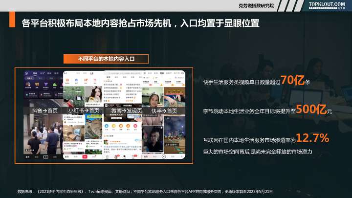 本次报告选取微博、抖音、快手、小红书,分析各平台本地达人的现状及内容生态;本地生活内容的火爆将为本地商家带来哪些营销机遇?以下报告将为你一一解答。