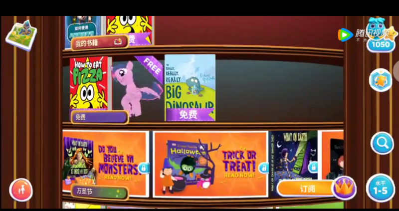 游戏需要开通会员没有体验,测试了魔法绘画、拼单词、单词跟读以及图书馆里的一些免费书目。拼单词很简单,先演示正确单词,之后打乱顺序,可以自由挪动字母。单词跟读感觉对于跟读的识别不太好,一直提示再读一次。免费图书馆的英文绘本是3D动画形式,在有提示的部分可以点击互动,画面比较精美。魔法绘画则是填色,填色之后的魔法部分是可以转换成立体的存储在用户的“秘密基地”,还可以拍和自己的合照。