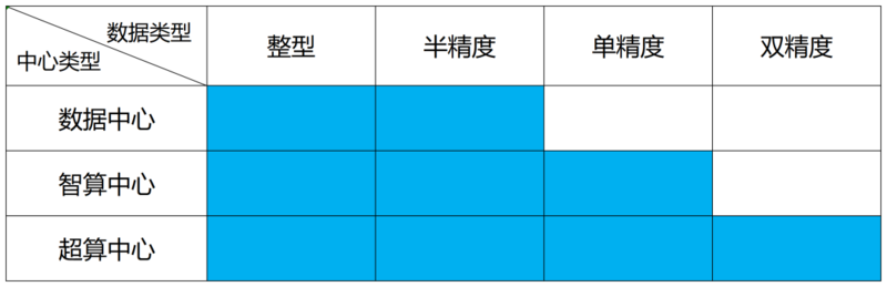 算力调度更多是指调用合理的算力去处理相应的数据,数据中心拥有多种算力,每种算力针对不同类型的数据。从计算类型来看,算力主要分为整型和浮点计算。整型计算适用于深度学习模型的推理运算;半精度计算适用于深度学习模型的训练运算;单精度计算多用于图形应用程序、图像处理和机器学习等;双精度浮点运算主要用于超算领域。这里的分类维度和通用算力、智能算力、超算算力不是一一对应的关系。一般来说,通用算力主要用来处理整型和半精度计算;智算算力更合适进行单精度计算;超算算力特别擅长双精度计算。各类算力中心重点处理的数据类型如表2所示。
