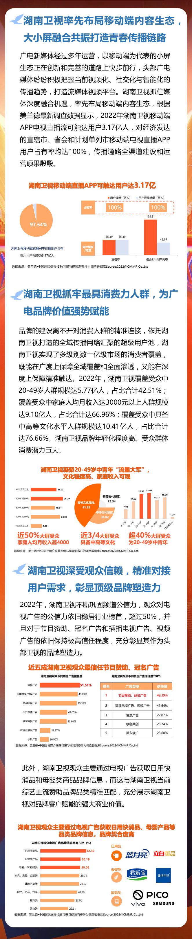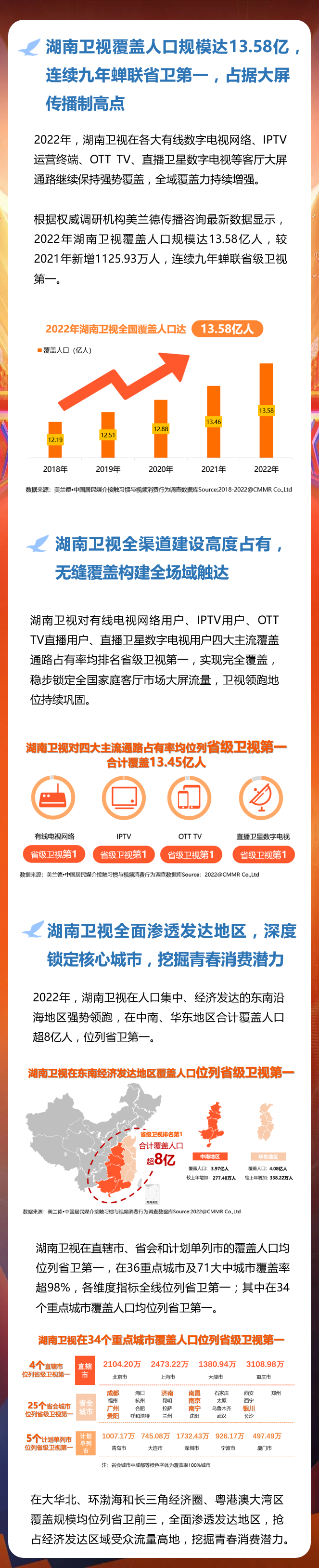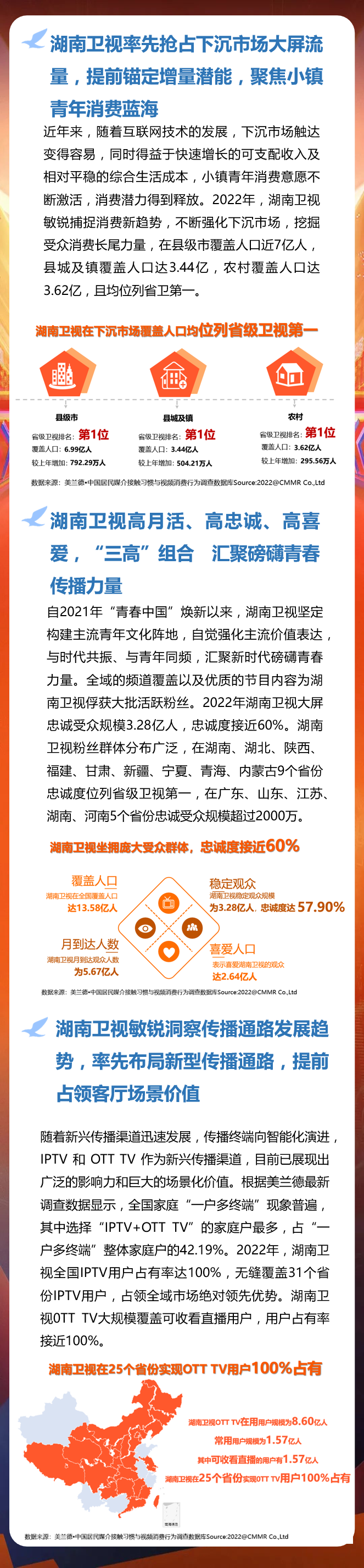 【流媒体网】摘要:湖南卫视跨越市场周期,在高质量建设具有强大引领力、传播力、影响力的主流新媒体道路上,牢牢捍卫省级卫视第一,全国覆盖规模省卫九连冠。