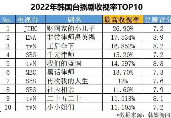 2022年韩国台播剧收视率Top10