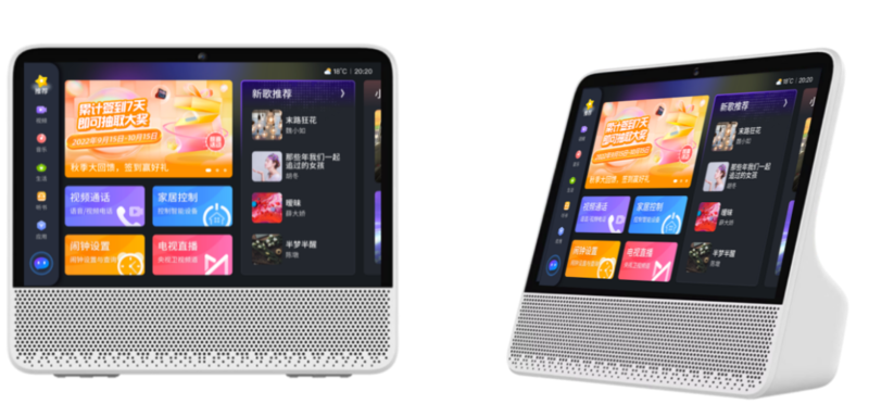 中国移动智能音箱升级为10.1英寸大屏,白色外观简洁雅致,1GB运行内存,8GB机身存储,支持1080P@60fps分辨率视频解码,标配蓝牙4.2,并搭载200万像素摄像头,可作为家庭监控使用。