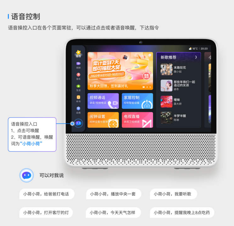 中国移动智能音箱集成语音识别、语义理解、语音合成等核心AI能力,实现端到端链路技术把控,音箱实时唤醒率、开机时间、起播速度、语音识别率均超过行业平均水平。支持视频通话、家居控制、健康养老、电视直播、影音点播、生活服务等多领域语音交互能力,为用户提供便捷的家庭场景服务。