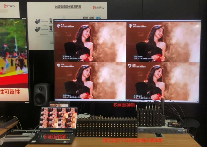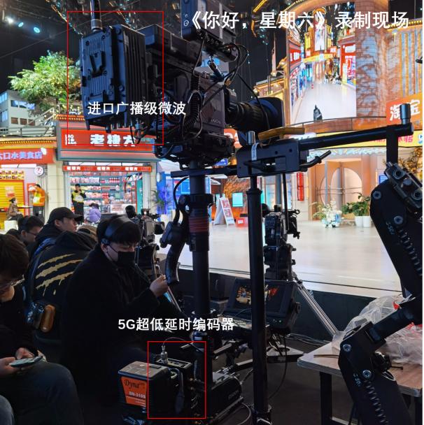 现在,5G传输系统正在湖南卫视《你好,星期六》的节目现场与昂贵的进口广播级微波传输系统进行实时传输技术指标对比,其优异的图像质量、出色的传输延时、便携性,超高性价比,获得集团制作调度中心众多技术领导和专家老师们的认可,并对其应用场景进行了深入讨论和指导。