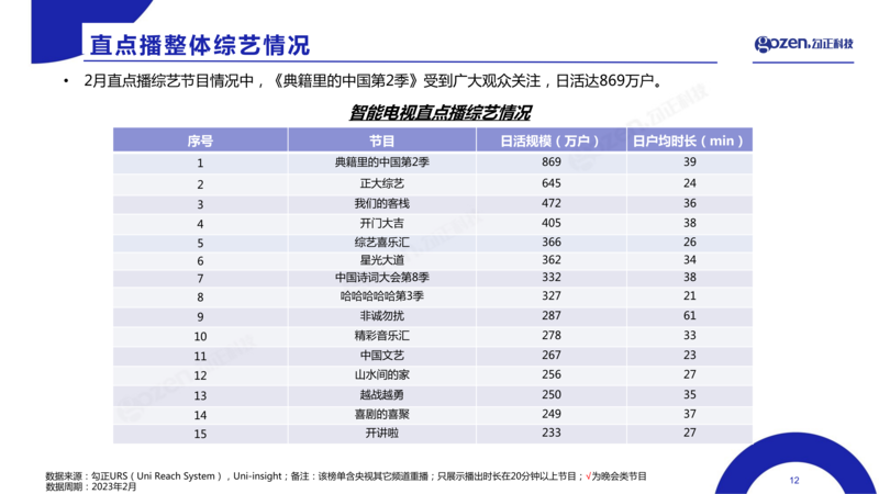 大型文化节目《典籍里的中国第2季》,日活规模达到869万户。