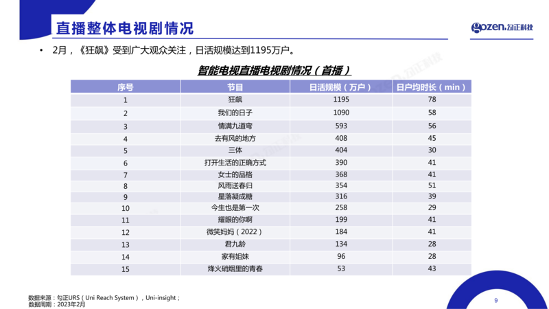 直播剧(首播):反黑刑侦剧《狂飙》,日活规模达1,195万户。