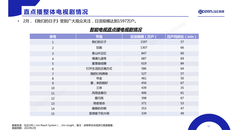 直点播剧:年代都市剧《我们的日子》,日活规模达到1,597万户。