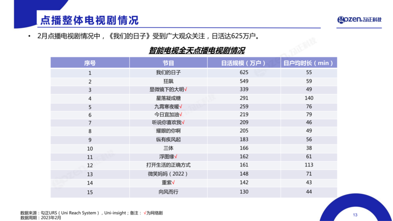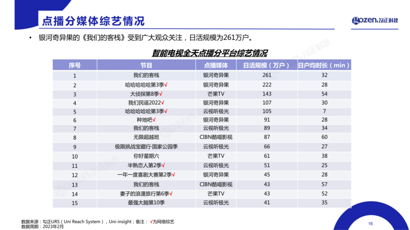 基于家庭智能大屏来看,根据勾正科技(Gozen)显示,2月: