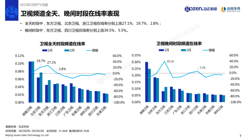 晚间时段中,东方卫视、四川卫视在线率上涨39.5%、5.5%;