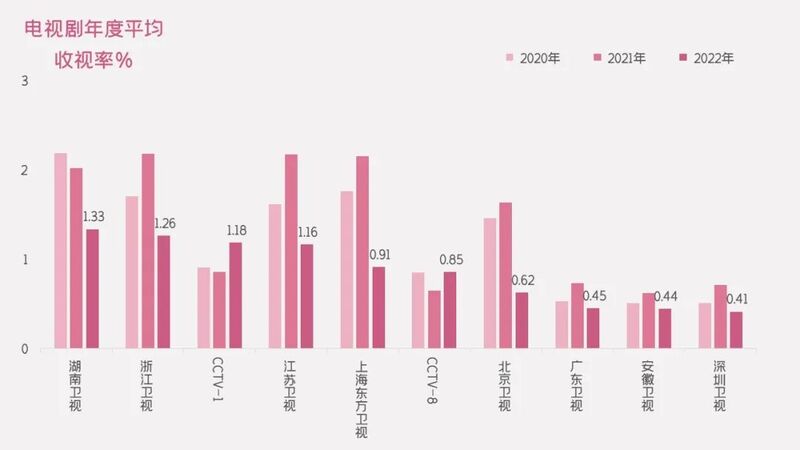 然而值得警惕的是,多媒体时代的多屏分流,已经对大屏造成威胁:2022年,全国电视剧市场人均总收看时长同比减少1115分钟;人均收视时长跌破30分钟、减少3分钟。如何保持这块蛋糕不被其他竞争对手继续分割,电视大屏仍需努力。