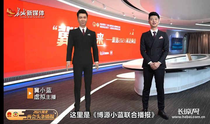 2021年全国两会期间,《2021直通全国两会头条播报》,采用“虚拟主播·冀小蓝”+真人联合播报的形式,全天候播出两会上与河北相关的重要新闻及资讯。