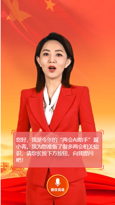 当年全国两会期间,长城新媒体集团《您的“两会AI助手”已上线》融媒创意互动作品,采用人工智能、语音合成技术,用户可以用语音对话的形式与新一代的长城虚拟主播冀小青互动,聆听政府工作报告、了解全国两会热点。