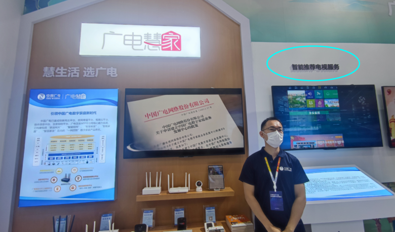 1)中国广电展台的“智能推荐频道”,demo演示的是华数的界面。