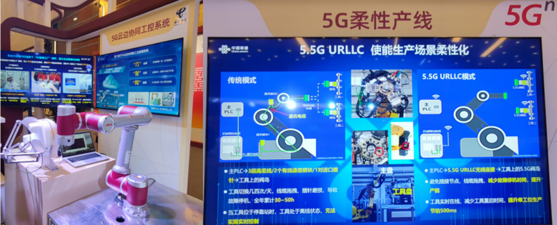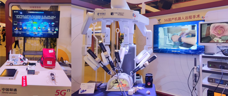 在5G发展成就展展区,5G+智慧矿业可以看见中国移动的5G智慧井工矿、中国电信的5G智慧露天矿山,智能制造可以看见中国联通的5G柔性产线、中国电信的5G云边协同工控系统,5G+智慧医疗可以看见中国联通的5G智慧急救、中国电信的5G国产机器人远程手术等等展示,另外还有联通的5G+智慧港口、5G+媒体融合,移动的5G智慧校园、5G+智慧交通,电信的5G+智慧文旅、5G+信息消费等。可以说,5G+已经涉及生产、生活的方方面面。