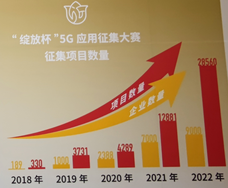 自2018年至今,工信部连续五年举办“绽放杯”5G应用征集大赛,而2022年第五届“绽放杯”的参与企业数量相较2018年增长了46倍,项目数量增长了86倍。