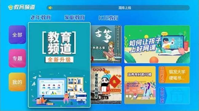 IPTV作为一个拥有近3.9亿户用户的传播平台,一个对视力相对友好,对操作也相对友好的大屏平台,其“教育”范围又远远超脱K12。