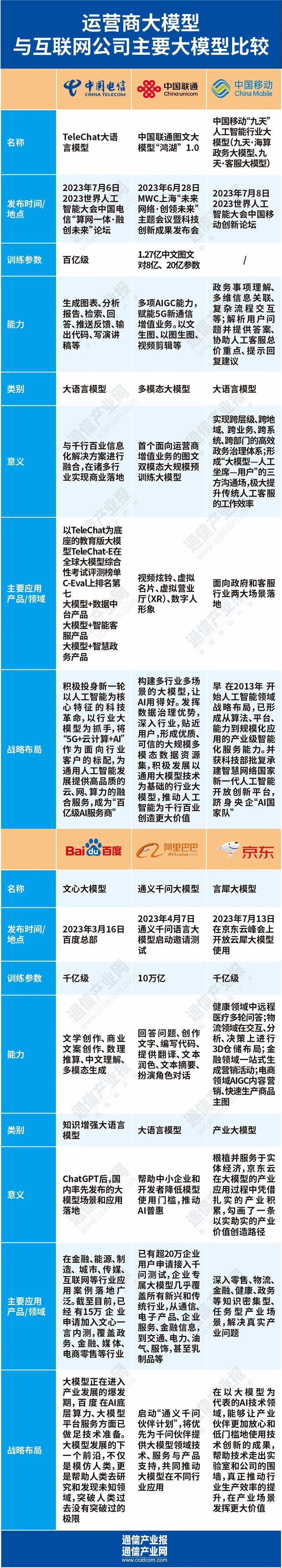 从发布信息来看,中国联通的大模型更加偏向图文,中国移动和中国电信的大模型更偏向于产业和政务的支撑。在实际业务推广之中,哪一个方向能够获得更多市场并不好说。但是图文方向的竞争对手更加具有优势,包括技术优势、先发优势、人才优势,都比通信运营商在这个领域更强,因此比较有挑战性。