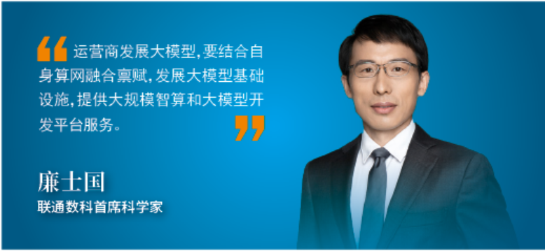 廉士国指出,运营商发展大模型,首先,要结合自身算网融合禀赋,发展大模型基础设施,提供大规模智算和大模型开发平台服务;其次,基于场景触点优势,构建行业大模型能力,一方面赋能自身丰富的业务场景,另一方面助力政企行业客户提质增效,相关经验反哺通用大模型技术改进和提升;再次,践行科技创新型企业,提升人工智能科技投入,助力我国通用人工智能核心技术发展;最后,活用生态聚合经验,构建产学研相结合的大模型生态,解锁人工智能规模化落地瓶颈,践行央企担当,助力数字中国建设。