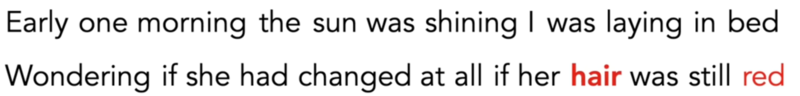 “Early one morning the sun was shining I was laying in bed wondering if she'd changed at all if her hair was still red”