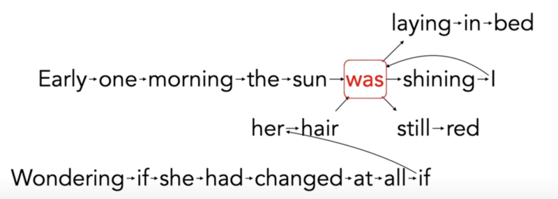 注意到单词“was”出现了三次。我们把这三个实例合并成一个,这样我们的序列就变成了如下的一个图。