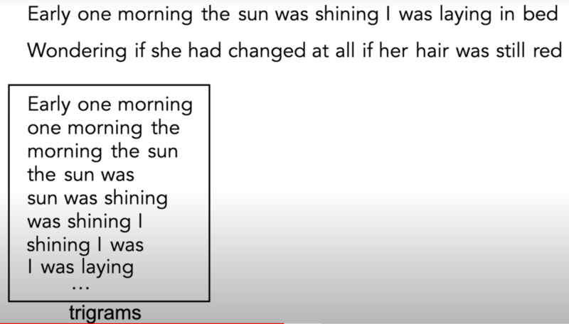 我们可以使用这些trigrams来定义在前两个单词同时出现的情况下的,当前单词紧跟其后出现的概率。