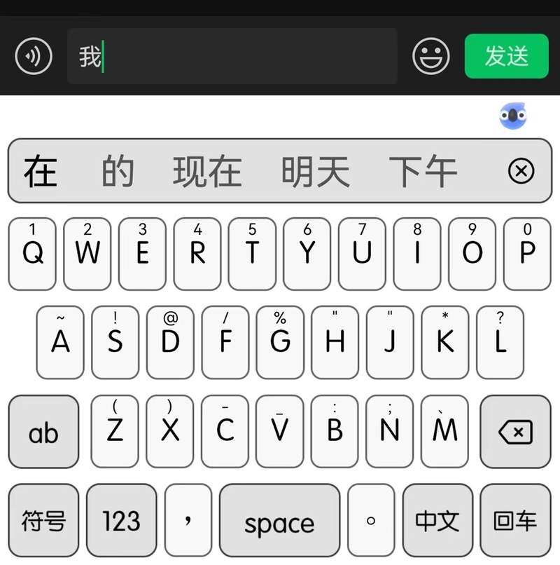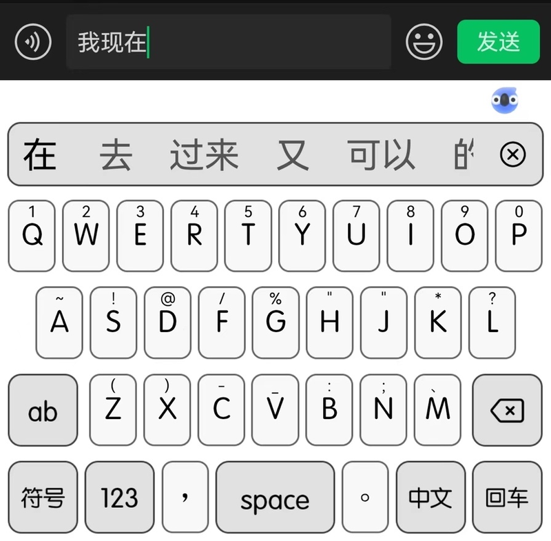 当我们继续输入或选择“现在”之后,系统会进一步给出以“我现在...”开头的字、词和句子的组合建议。