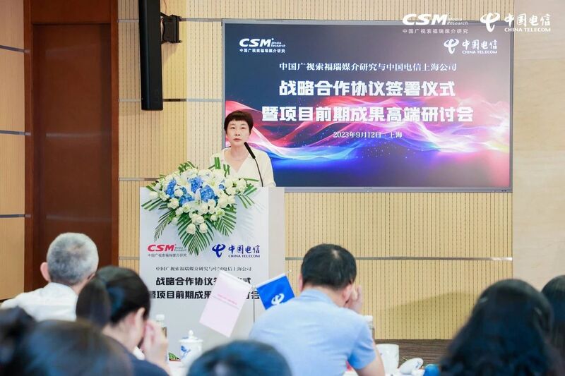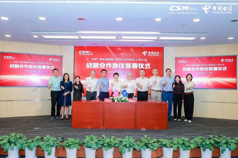 CSM媒介研究与中国电信上海公司的战略合作协议签署受到业界广泛关注,来自全国主流广播电视媒体、主流长视频平台、国际国内广告公司与节目制作机构,以及学界业界资深专家学者见证了此次战略合作协议的签署。