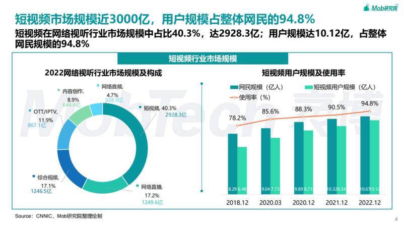 【流媒体网】摘要:短视频市场规模将近3000亿,用户规模占整体网民的94.8%。(文末附有报告全文链接,欢迎今日流媒体VIP会员下载阅读!)
