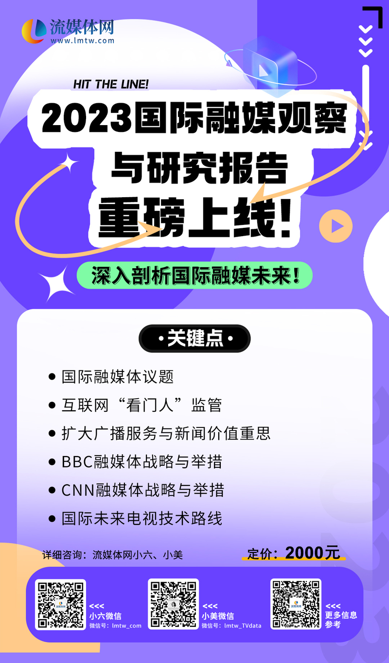 想了解更多国际融媒体战略部署,请查阅流媒体网最新推出的行业研究报告《2023国际融媒观察与研究报告》,其中包含更详细的案例分析。本报告希望通过详尽的事实与数据信息,为我国融媒体发展提供丰富的国际视角与思路,继续推动我国媒体融合发展。