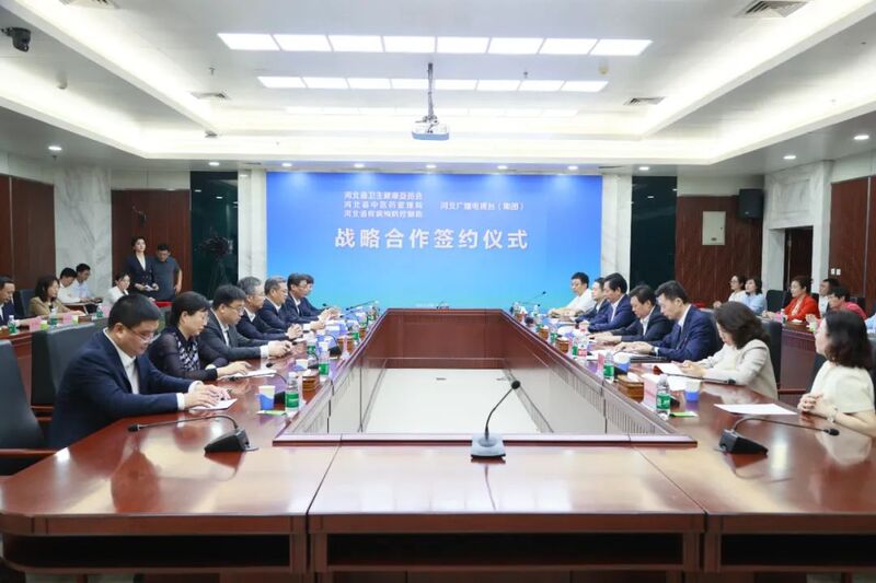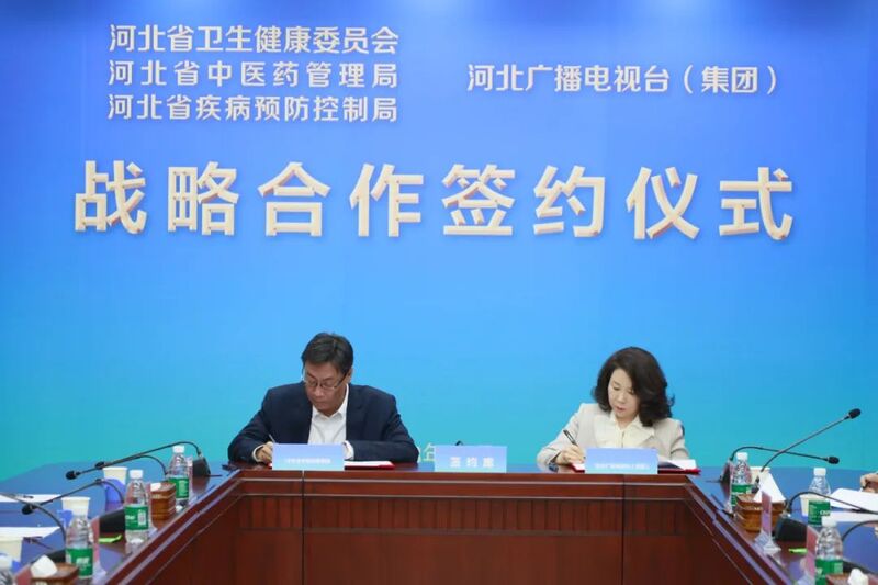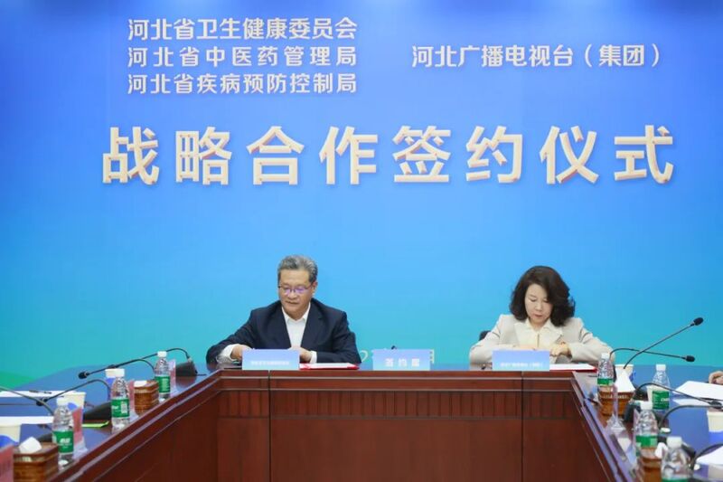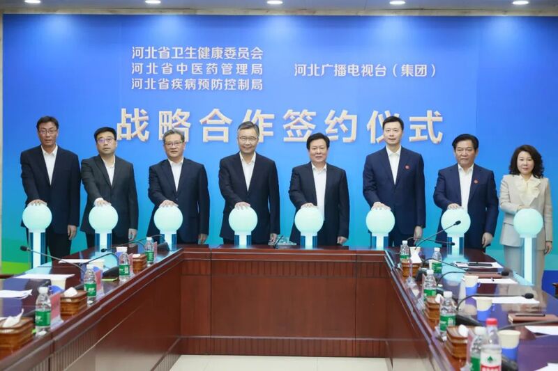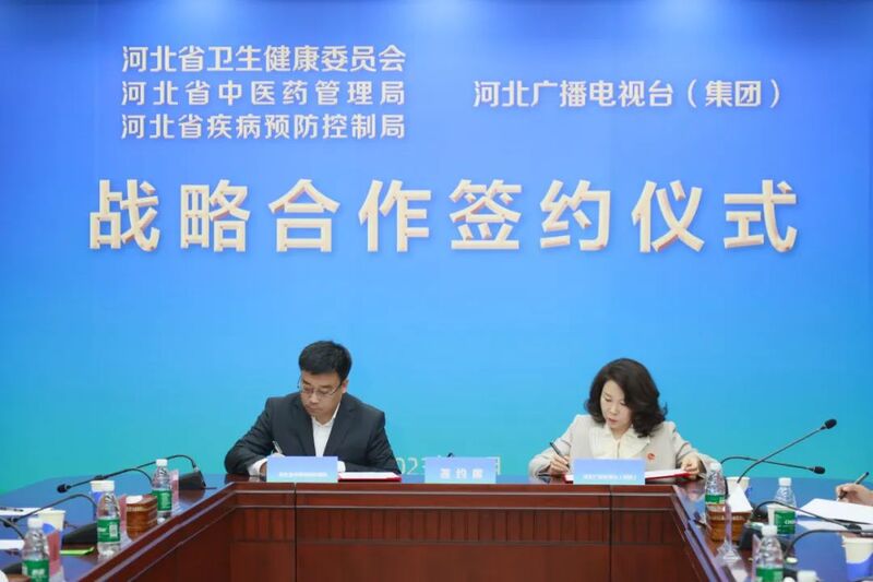 2023年10月16日下午,河北省卫生健康委、河北省中医药局、河北省疾控局与河北广播电视台战略合作签约仪式在河北广播电视台举行。河北省卫生健康委党组书记、主任王现坤,河北省委宣传部副部长、河北广播电视台党委书记、台长武鸿儒出席活动。河北省卫生健康委党组成员、副主任马哲,河北广播电视台党委副书记、总经理肖钧分别致辞。河北省疾控局党组书记、局长孙国安,河北省中医药局党组书记、局长张凯等出席签约仪式。