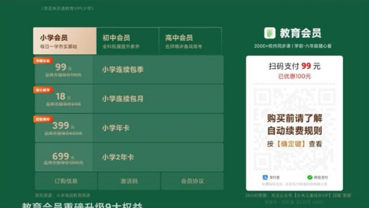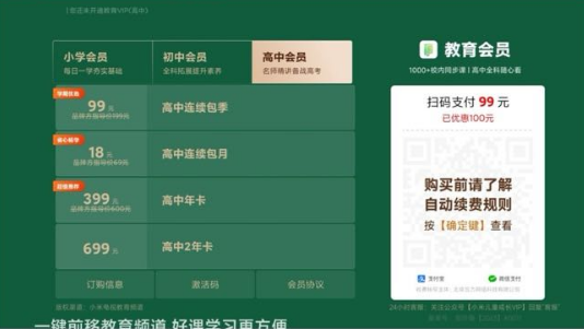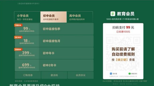 四、教育会员,按照年级段分为小学会员、初中会员、高中会员,均需要进行分别付费。